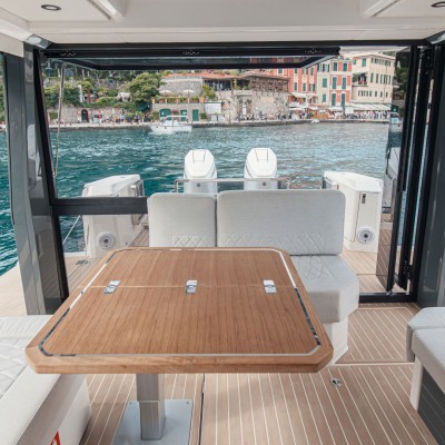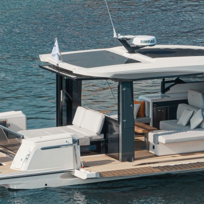 Le Saxdor 400 GTO est un modèle phare très attendu qui incarne des performances et une efficacité de croisière exceptionnelles. Construit sur une coque à deux marches et conçu pour les gréements hors-bord jumelés, le Saxdor 400 GTO promet une expérience sur l'eau exceptionnelle. La timonerie ouverte s'étend sur toute la largeur du bateau, maximisant l'espace de vie interne et offrant un accès direct aux terrasses latérales, une caractéristique de conception unique qui améliore la fonctionnalité des balcons et crée une expérience d'île privée au repos.